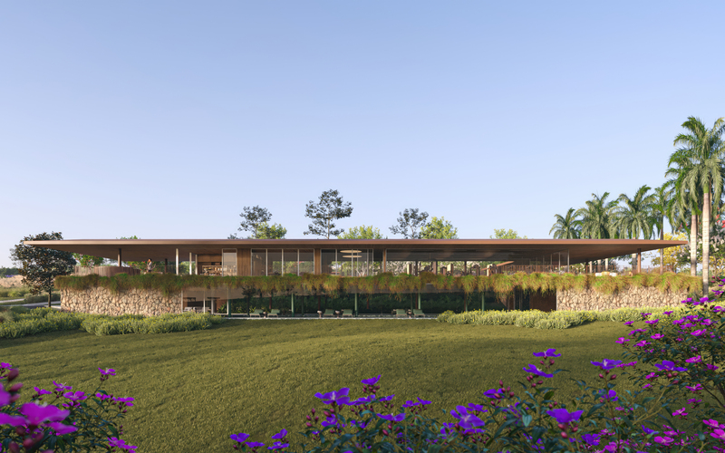 Responsável pelo paisagismo, Daniel Nunes reforça a proposta de imersão natural. “Para este projeto, optamos pelo efeito reverso: não é o jardim do empreendimento, é o empreendimento que está inserido dentro de um grande jardim, com arborização de árvores de diversas espécies”.